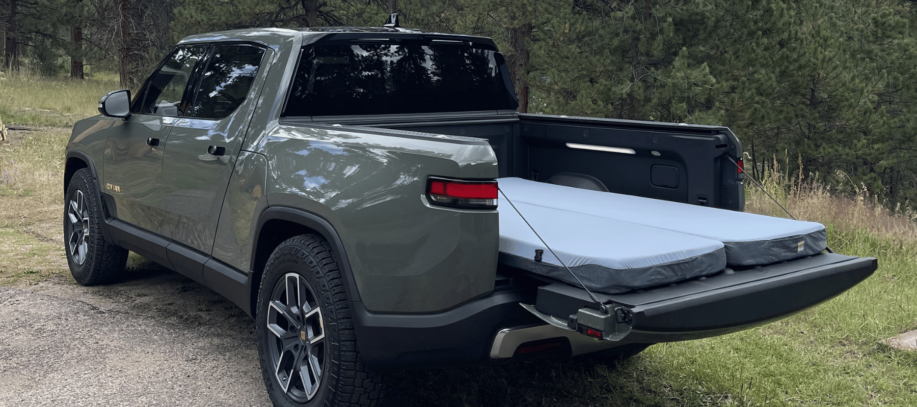 Yes. All three Rivian models — R1S, R1T, and R2 — are well suited for car camping and overlanding. The R1S and R2 offer flat cargo floors for sleeping inside with purpose-built HEST mattresses, while the R1T's truck bed with tailgate down creates one of the best outdoor sleeping platforms available.
