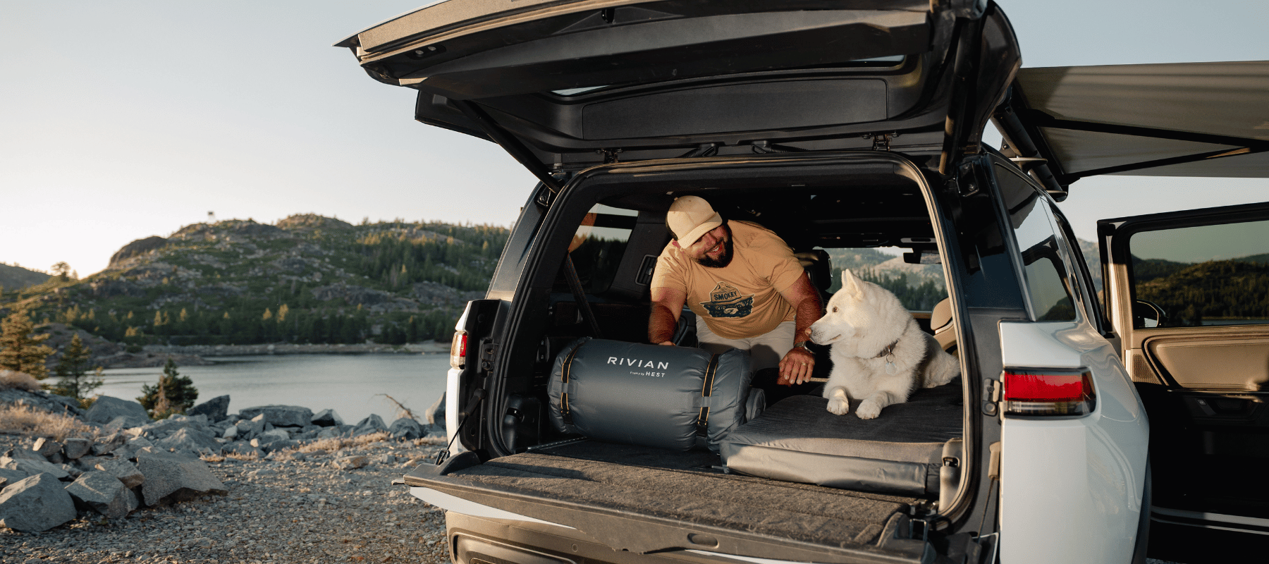 The Rivian R1S is a natural basecamp. With the rear seats folded flat, the cargo area provides a spacious, flat sleeping surface perfect for car camping. HEST makes a purpose-built Foamy specifically for the R1S — designed to fit the exact cargo dimensions so you're not guessing at sizing.