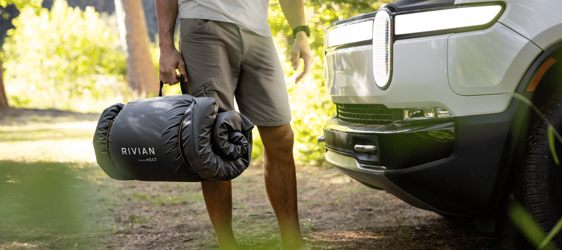 Yes. HEST Foamy mattresses roll up compactly using their integrated compression harness and fit in the Rivian R1T's frunk for transportation, keeping the truck bed completely clear when you're not camping.