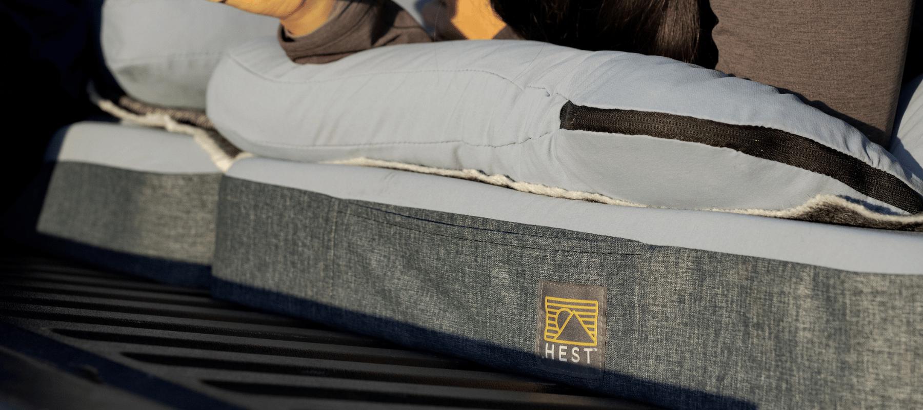 What to look for: at least 3.5 inches of thickness (thinner foam bottoms out at the hips for side sleepers), a high R-value for insulation (HEST mattresses are rated at 8.8), and a removable, washable cover. If you share a tent with a partner, two individual foam mattresses linked side-by-side give you independent firmness without the motion transfer problems of a shared air mattress.