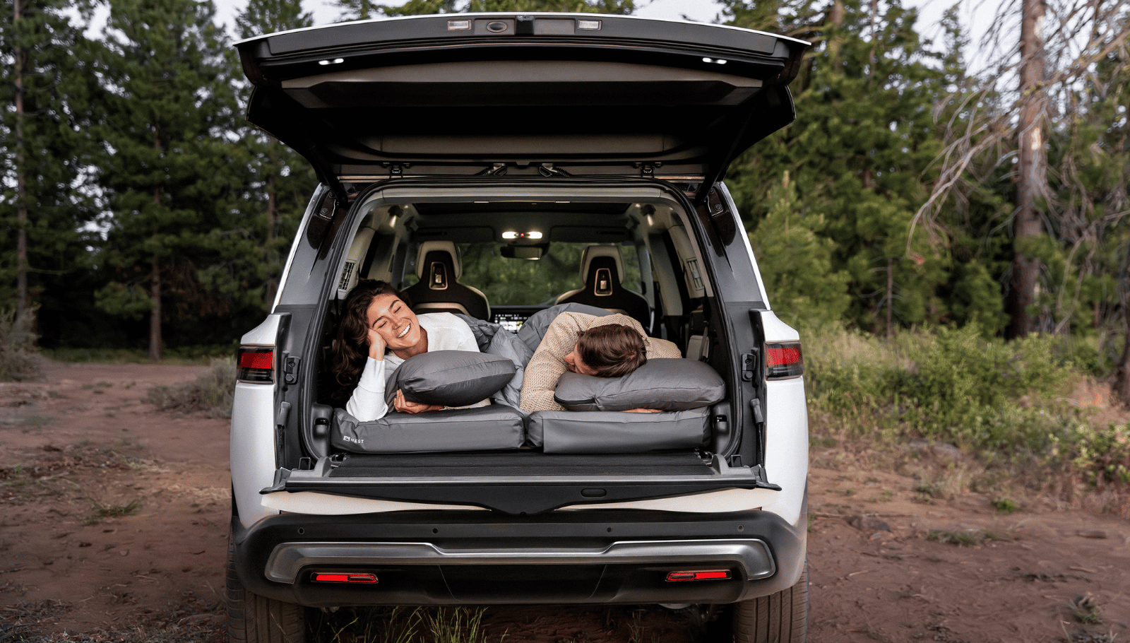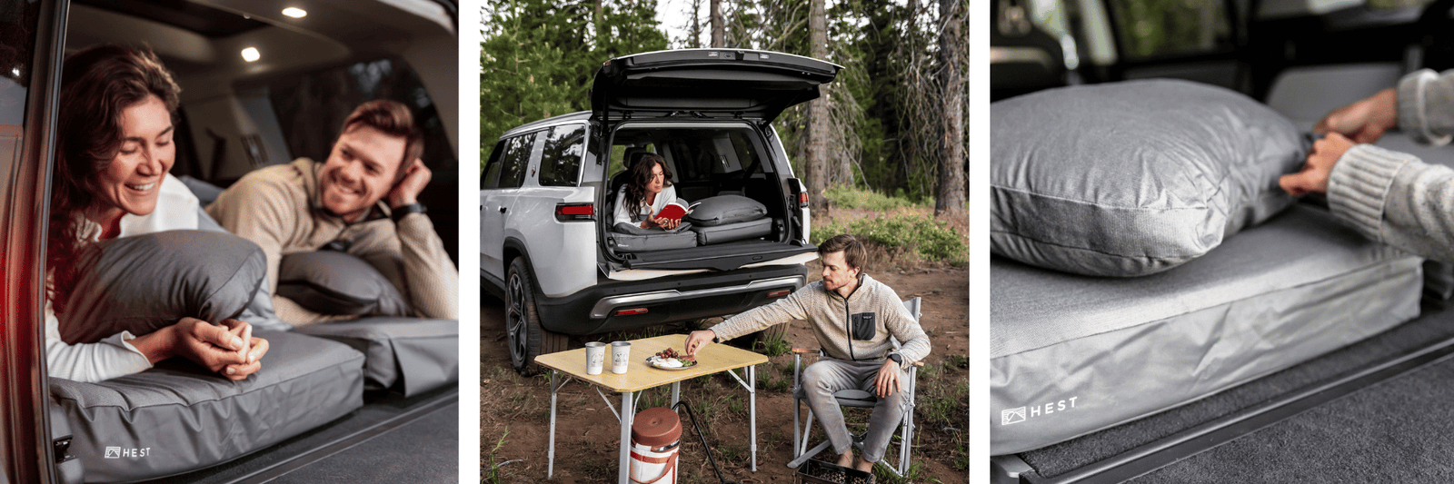The Rivian x HEST Camp Pillow is a celebration of comfort and style. We’ve teamed up with Rivian to create this sleek design to roll with you on all your Rivian adventures.